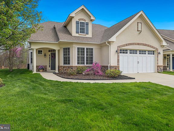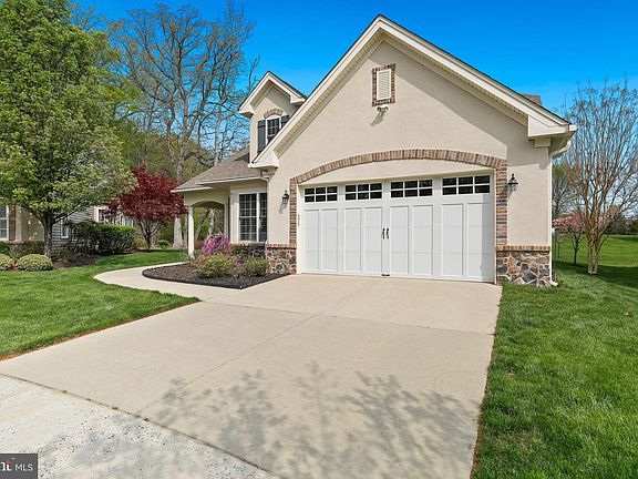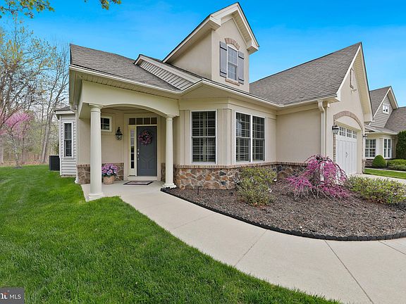 Nestled on a quiet Cul de sac in the coveted Wyngate Active Adult Community and backing to both woods and open green space this jewel box of a home showcases elegance and easy one level living. The impressive front entry displays a European style design, enter to an impressive foyer boasting tray ceiling, wainscotting, beautiful staircase and large tile flooring that flows throughout much of the home. A convenient study with French doors, plantation shutters and recessed lighting provides a quiet office area or reading room. The dining room displays a tray ceiling and bay window overlooking the wooded area to the side of the home. A grand gathering room with soaring vaulted ceiling and sophisticated styling of a floor to ceiling tile fireplace with glowing stones opens to the gourmet kitchen offering soft white Woodmode Brookhaven cabinetry, wood vented hood, beautiful tile backsplash, granite and convenient island breakfast bar and best of all an amazing, coffered style ceiling. A cozy breakfast room with bay window overlooking nature’s beauty opens to a gorgeous sunroom with walls of windows, and cathedral ceiling. A sliding glass door draws you to the privacy of the rear yard and expanded patio area. Off the hallway discover a sophisticated owner's suite offering his and her closets, expanded owner's bedroom with bay window. Unwind after a long day in the privacy of the owner’s bath with both shower, soaking tub, and linen closet. A separate hallway leads to the guest bedroom and guest bath. The laundry room has washer, dryer, and tile flooring leading to the large garage, There is also plentiful storage: a deep closet in the downstairs hallway and upstairs storage room with window. This move- in ready home displays tasteful custom paint and trim work throughout, security system and more. Don't miss this rare opportunity to own this lovely home in a preferred location at Wyngate. Enjoy the clubhouse and social activities, walking paths, outdoor pool and all that popular Wyngate has to offer. Convenient to route 70 and 38 and 295. You'll love living the good life at Wyngate!
