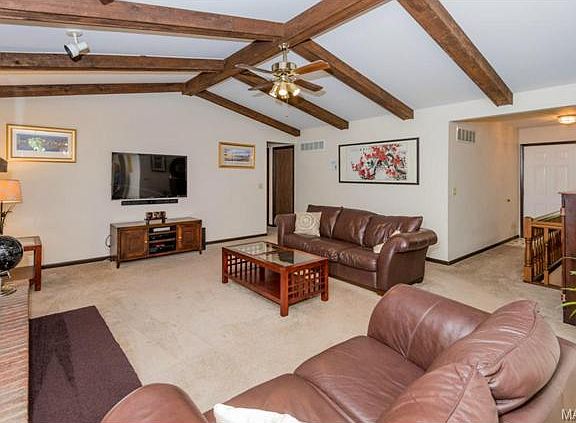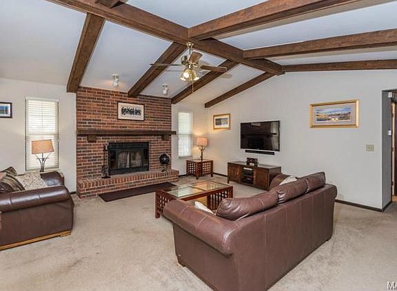 Large Great Room Ranch with Main Floor Laundry. Soaring ceiling in Great Room with large brick fireplace. Wall Mount Big Screen TV and Sound Bar remain in Great Room. Above Ground Pool with deck. Finished Lower Level with Back Bar and Rec Area. Wall Mount TV to remain in bar area. Office and Den also in Lower level. The 1/2 bath is adjacent to the media room. The projector and AV equipment all remain. The seating in the Theater is negotiable. The Washer, Dryer and Refrigerator will also convey with the property. This is a great close-in neighborhood in the desirable Francis Howell Schools. Owners are relocating.