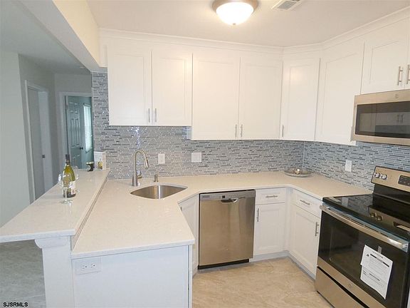 2 Bedroom, one bath first floor corner unit condo. Completely renovated in March 2020. Brand new kitchen with stunning quartz counters, stainless appliances and artistic glass backsplash over large modern tile floor. Brand new washer/dryer, freshly painted. All new doors. All of the water lines have been replaced during this renovation. Community Association has beautiful pool, hot tub and lifeguards. This special property is nestled in the heart of Egg Harbor Twp, walking distance to CVS, Tilton Inn, Produce Junction to name a few. Right off the Garden State Parkway. 10 Minute Drive to Margate Beach. A fantastic location. Park your car right out front with no steps to climb. Covered front patio. Yes a first floor corner unit! Who could ask for more? Even the property taxes are fantastic at only $1,723 yr (2019). Just bring your towels and umbrella as this is ready to move in. Ideal property for just starting out or as a beach house for a very affordable shore getaway. Quick closing. Two rooms virtually staged.
