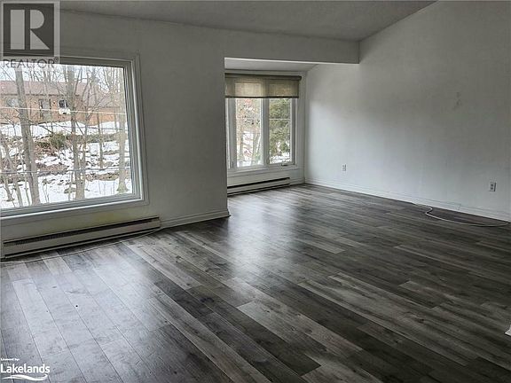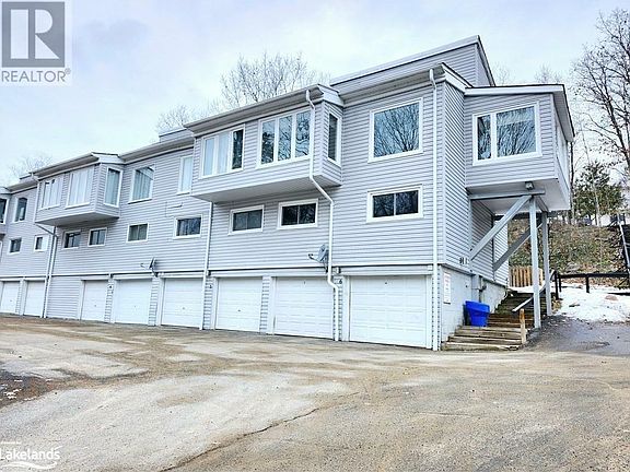CORNER UNIT WITH DOUBLE CAR GARAGE. This bright and spacious 3 bedroom, 2 bathroom condo-townhouse is ideally located in downtown Huntsville. An easy walk to FreshCo, shops, breweries, restaurants, parks & the water. This unit is one of the largest in the complex. Just a 10 minute drive to Hidden Valley Ski Hill and Hutcheson Beach. Approx 1500 square feet. Main Floor: kitchen with views of the forest, open concept living and dining area, Muskoka room which could be used as an office space. Lower Level: two bedrooms with a full bathroom (tub) and laundry. Upper Floor: loft style suite with bathroom (shower). Heating is electric baseboard. Plenty of windows for natural light and fresh air. Rent includes Town water & sewer, snow plowing, maintenance & care of the grounds, use of garage plus visitor parking. Seeking a responsible Tenant with solid employment and good credit. The Tenant shall be responsible for hydro, water heater rental, Tenant Insurance, Cable TV and Internet. Applicants will need to submit an application form with employment information, references plus credit check (Equifax/Transunion). First and last months rent required. NOTES: The unit is being rented unfurnished. Some building construction and upgrades are taking place this year - ask for more details. Condo corp rules: one pet up to 25lbs, parking in the garage only (two car garage - trucks won't fit), visitor parking is for 24 hours. (id:41440)