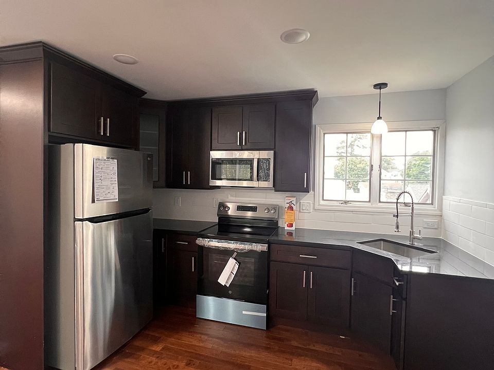 Update 2 Bedrooms with New Kitchen and Bathroom. New hardwood floors throughout. Freshly painting with nice deck in the back. It has washer and dryer hookup. Also, you have one parkin space. Don't miss this opportunity. Ready to move in, parking space is including with rental. One Month Broker fees paid by the Tenants Pics from last August 2024 Tenants pay hot water and heat