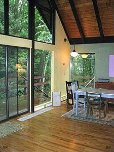 Sweet Contemporary on 1.69 acre lot, backed by 12+acre natural area owned in common with 4 other neighbors. Features beautiful hardwood floors, cathedral ceilings, wall of windows, large MBR w/wall of closets, Kitchen w/ breakfast bar and extra 9 x 3 eating area, wrap around deck on lower level patio, lovely natural fenced-in yard, and a small barn for storage & gardening. All just over 4 miles from the Ithaca city limits. Complete details at property.