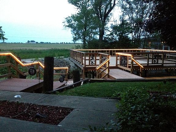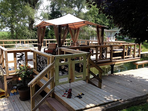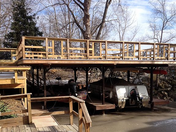 Beautiful Lake Home. Includes extra lot with 2 car garage. New steel shorewall with two slip covered dock, multiple decks including enclosed top 1,000 sf party deck. Multi tier stone landscape. Covered patio, new stone deck with built in fire pit. Large storage shed.
