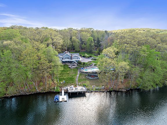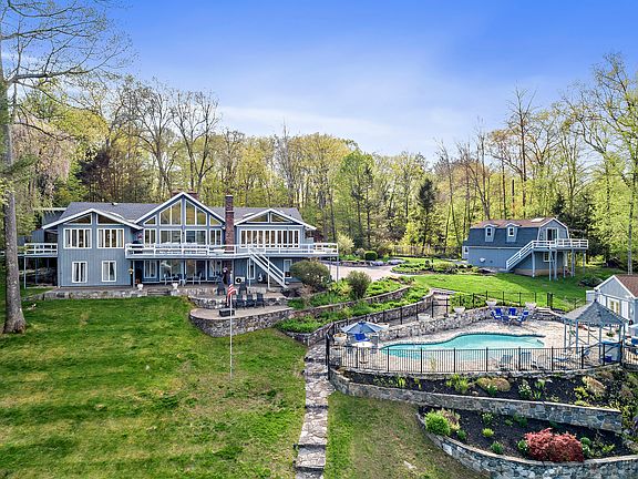 This spectacular Lake Lillinonah Villa on 2.24 private acres is truly one of a kind.The gated property includes: 7,000 sq ft Contemporary, 1,440 sq ft Guest House, 360 sq ft Pool House, Gunite pool, tennis courts, patio, wrap around deck, gazebo, lakefront deck, & private dock.The light filled Main House features a dramatic open floor plan; a Great Room w/hdwd flrs, a 2-story whitewashed brick fireplace, cathedral ceiling, wall of windows & sliders to deck.Expansive Kitchen has beautiful cabinetry, granite counters, tile backsplash & flr, an L shaped island w/6-burner propane range & copper hood, prep sink, & wine cooler.Sub-zero refrig, 2 wall ovens, pizza brick oven. The eat-in area overlooks the lake & has vaulted ceiling & skylights.A formal Dining Room w/hdwd flrs & French doors to the deck. Highlights of the sumptuous Master Suite: Sitting Rm w/built-ins & sliders to deck, solarium, full BA w/Jacuzzi & dressing rm. 2 addtl BR & Full BA complete main level. Walk out LL has FR w/fireplace,built-ins, & slider to patio. Guest Suite w/sitting rm, & full BA. Office, Laundry, Storage. Chic and spacious Guest Hse has Great Rm w/dining area, vaulted ceiling, skylights, KT w/breakfast bar, sliders to deck. BR, 2 BA, LL Bonus Rm w/ceiling fan, & spiral staircase. Set on Lake Lillinonah, the private grounds offer limitless opportunities for recreation & relaxation from every angle.