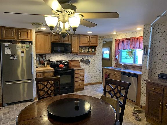 Welcome home to this spacious Country Ranch Home! Home offers updated oversize kitchen to accommodate large dining room table for family gatherings, walk in pantry for ample storage, plenty of counter space/cabinets for the cook in the family, all updated kit appliances to remain for the buyer's enjoyment, off kitchen is a lovely enclosed heated porch that adds additional square footage to relax with a good book or to enjoy your morning coffee all year long, a great bonus is the Cast Iron wood stove to remain for a second heat source to keep the entire family comfy all winter long, 3 spacious bedrooms, replacement windows, partial metal roof, walk out basement, carport, and lovely perennial gardens through out the yard ready to bloom in the upcoming months! This home is AFFORDABLE with low taxes and perfect for someone looking for the ease of one floor living!
