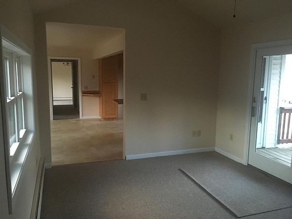 Spacious 2 bedroom house on quiet residential road abutting farms and conservation land. Large eat in kitchen, living room with privet deck, large bathroom with washer and dryer hook ups. Small private yard. New central air condition and electric heat pump. Oil baseboard heating system as back up. Dog allowed with owners prior approval. No Cats. Applications will only be taken through Zillow. Applications via email or telephone will not be accepted. Available February 1st. No cats! Tenant pays for all utilities, trash collections and snow removal of walk ways. Owners pays for lawn care, snow plowing driveway and maintenance.