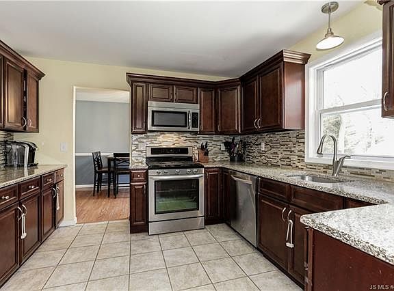 Extra special and ready for you. In like-new condition, spacious 4 large BR, 2BA, cape in a beautiful area ot newer homes. Walk to antique stores in the downtown area. Even the kids will like this one. Huge fenced yard with patio, hot tub, inground pool. View of the woods behind the yard. Home has a formal dining room and living room with hardwood floors, ceramic tile in kitchen and baths, large laundry room, oversized garage. Can we ask for anything more? Well there is.... a full finished basement, central air, 2 bedrooms on the first floor with hardwood fl. Put this one on your must see list. This is kept like a new home, but with the benefit of mature landscaping and all the extras outside without the outrageous costs. Lots of new upgrades. Solar panels were put in last year.