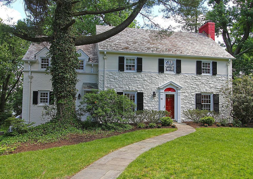 Fantastic light, bright Colonial, open, spacious rooms, fabulous flow for entertaining.NEW EIK w/stainless steel appliances, granite tops, French doors to private deck, open to Din Rm, Glass enclosed Fam Rm, Den/Lib/office. Lovely sunken Liv Rm w/woodburning fireplace. Custom Chef's Kit w/Cherry cabinets - sink, large center island w/sink, seating for 4, B/I desk, open to breakfast rm. 4 Bedrooms & 3 full baths on 2nd flr + office/nursery. Master Suite-outfitted closets, NEW sumptuous marble bath w/glass stall shower & soaking tub. New Jack-n-Jill bath, 4th Bdrm en suite. New Media Room/rec rm on grade lev + au pair suite w/separate entrance & new full bath. Wine room, Large Laundry room, access to 2 car garage. All cedar closets throughout. Very private half acre rear gardens. All systems updated & well maintained, new double insulated windows thru-out. Fresh & modern.