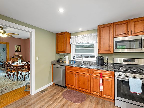 On the market for the first time in 53 years this 3 bedroom, 2 bathroom home has been lovingly maintained by the same family. Located in a quiet neighborhood close to town, this property offers the peace and tranquility you’re looking for without being far from your favorite stores and restaurants. Lots of recent work has been completed within the last few years including a new kitchen with granite countertops and stainless steel appliances, first floor bathroom updated with grab rails and a modern step in shower, laundry relocated to the first floor (additional laundry in basement), new water heater, new furnace, and an updated roof and windows. Natural woodwork in the dining room and family room give you a warm vintage feeling inside and a spare room/den offers the potential for first floor living. Upstairs you will find a full bath, three bedrooms, and the convenience of walk-in attic space for easy storage or future living space. Outside of the home is a large barn that presents even more storage opportunity and the option for a garage. A tidy, private backyard rounds off the exterior and has an outstanding history of family gatherings, gardening, and many priceless childhood memories. Close to I-93, the famous Tilton House of Pizza, the Tilton outlets, and numerous other stores make this an ideal location for commuters and those that appreciate having nearby essentials. Delayed showings until the open house Saturday June 22nd from 11AM-2PM.