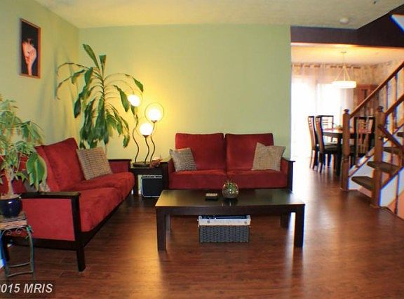 THIS BEAUTIFUL 3 BR 2.5 BATH TOWN HOME HAS AN OPEN & LARGE KITCHEN WITH SS APPLIANCES, FRENCH DOORS TO 16X12 DECK THAT BACKS TO WOODS. OPEN FIRST FLOOR PLAN W/BAY WINDOW IN LIVING ROOM, HARDWOOD FLOORS ON ALL LEVEL. FINISHED BASEMENT WITH WALKOUT TO FENCED BACKYARD W/GARDEN PERFECT FOR SUMMER GRILLING. HVAC REPLACED IN THE PAST 5 YEARS. CLOSE TO RT 695 AND SHOPPING CENTERS.