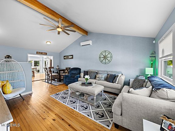 Discover this perfect high and dry waterfront in what some say is Little Egg Harbor's more desirable waterfront area, Atlantis Country Club. This stunning 3-bedroom, 1.5-bath home with an attached garage offers vaulted ceilings throughout, creating a spacious and airy atmosphere. The open-concept kitchen, dining, and living areas boast beautiful water views, complemented by hardwood floors in the living room. The bedrooms are thoughtfully positioned on the opposite side of the house, ensuring privacy and tranquility. Step outside into your personal summer retreat featuring a composite deck, paver patio, and brand-new sliders with built-in mini blinds. The 55' vinyl bulkhead, along with a new ramp, floater, and finger dock, are perfect for all your water toys and waterfront adventures. coastal charm with bright, beachy accents, bead-board cabinetry, Corian countertops, and an island with seating for fourideal for late-night gatherings or leisurely breakfasts. The owner's suite includes a private ensuite bath, lifetime room-darkening shades, and serene water views, with the potential to add a slider for deck access. The fully renovated main bath features a stylish barn door, a spacious tiled shower, and radiant heated floors. Every bedroom also enjoys vaulted ceilings, enhancing the home's inviting ambiance. Additionally, the property includes a brand-new washer plus dryer, closet organizers, mini-split cooling systems in each room, and updated windows, doors, and hardware. The home also has an outside shower, plus a garage with lots of storage potential. This home is ready to create lasting family memories.