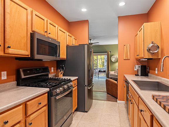 Opportunity to own this beautifully maintained townhome in the highly sought after Autumn Knoll neighborhood! Sitting on a private street surrounded by mature trees and conservation land, this property offers an abundance of privacy and natural light. Walk in to an open foyer with tile flooring. The spacious breakfast nook has large custom windows providing plenty of natural light for your morning coffee. In the kitchen, the matted stainless appliances have been updated for all of your cooking needs. The very spacious living and dining rooms located off the kitchen are perfect for all of your family gatherings. Step outside onto your private deck to enjoy the amazing fall colors. Upstairs, you have 2 large bedrooms including a large primary bedroom suite with a walk in closet, plenty of storage, and comes complete with a private full bathroom. Included in the primary is a built in safe. An additional office/bonus room boasts sliding barn doors for maximum space efficiency and character.  The full sized utility/laundry room is conveniently located upstairs as well. The single car garage comes with shelving and a workbench. Close to the outlets, shopping, dining, and nature.