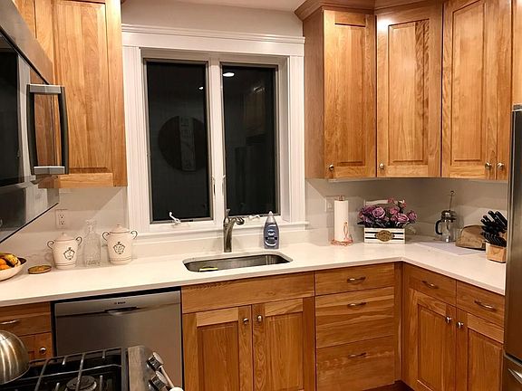 Gorgeous 2018 gut renovated top floor apartment in desirable East Watertown neighborhood. 5 rooms, 2 bedrooms and 1 full bath, each room has hardwood floors, recessed lighting and replacement windows. Kitchen has red birch cabinets, full size uppers, white quartz countertops and is fully applianced along with gas cooking. Full Bath has Tub/Shower combo with tiled floor, under vanity storage and custom built storage. Two equally sized bedrooms each with double door closets. Much needed central air, nest thermostat and gas heating. Two car off-street private driveway for exclusive use. Small yard for relaxing or entertaining. In unit laundry for ease of access and convenience. Available 9/1. First and Last required for move-in, Pets dependent on breed and application. Between the 71 and 73 Bus line to Harvard Square.