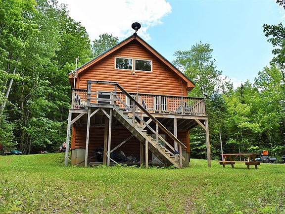 Adorable and private, waterfront log side home on a 2.34 +/- acre lot with 200 feet of water frontage. This property has been well cared for and offers 2 bedrooms, 1 bath and a full daylight basement that offers room for expansion and a deck for great outdoor living. There is a nice waterfront beach area and a dock on this quiet pond. A great property to call home or to use as your get-a-way to enjoy year round recreation on the water as well as all the surrounding recreational trails. A GREAT BUY!