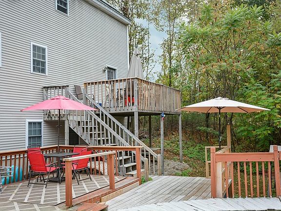 Welcome Home! Located on a cul-de-sac in Candle Wood Estates, this colonial is close to area amenities- FHS, FSU, Saima Park, train station, etc -yet still has a peaceful country setting. This home was built in 1999 and has had 1 owner. Plenty of parking- a 2 car garage under and driveway. Open concept kitchen, dining and family room areas. Kitchen offers a breakfast bar and has a door leading to the deck. Family room is front to back, has a vaulted ceiling and a slider that leads to a balcony overlooking the backyard and woods. Lots of potential for the partially finished heated basement, currently the finished area is being used as a 4th bedroom. Enjoy this quiet country setting on the farmer's porch or while relaxing on the deck or balcony! Above ground pool needs a new liner. Leased solar panels.