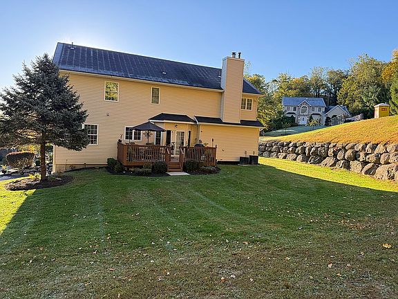 Beautiful farmhouse colonial with 5-bedroom, 2.5-bath home with incredible mountain views! This warm and inviting property features a dramatic two-story entry, open floor plan, custom French doors, and a cozy wood-burning fireplace with a handcrafted mantel. The large eat-in kitchen comes with modern appliances, and all bedrooms are spacious and versatile. Enjoy the large, flat backyard lined with trees for privacy—perfect for entertaining, gardening, or play. Relax on the charming front porch and take in the peaceful mountain scenery. A truly special home that blends comfort, character, and natural beauty!