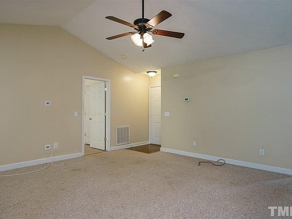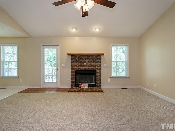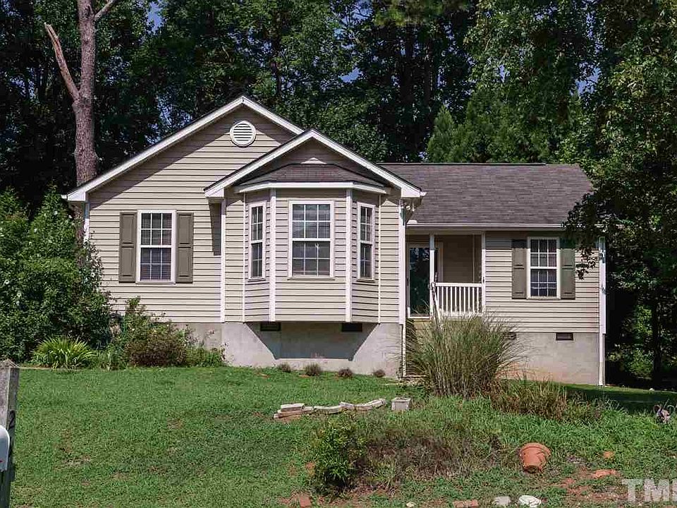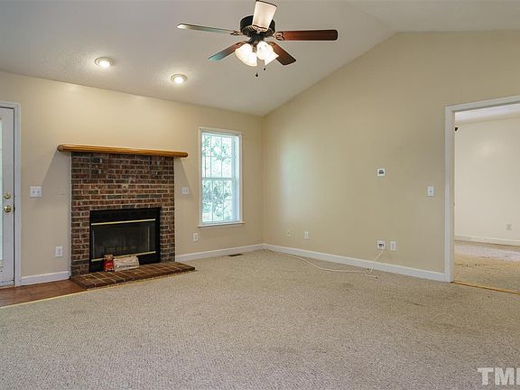One story home on cul-de-sac lot. Open floor plan with split bedrooms. Rocking chair front porch. Bay window on front, deck, exterior storage room. Living room features cathedral ceiling and wood burning brick fireplace. Master with large walk in closet. Kit has pantry. Side by side fridge included. Concrete driveway and parking pad. New HVAC. Needs new carpet, vinyl & paint...make it your own!