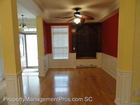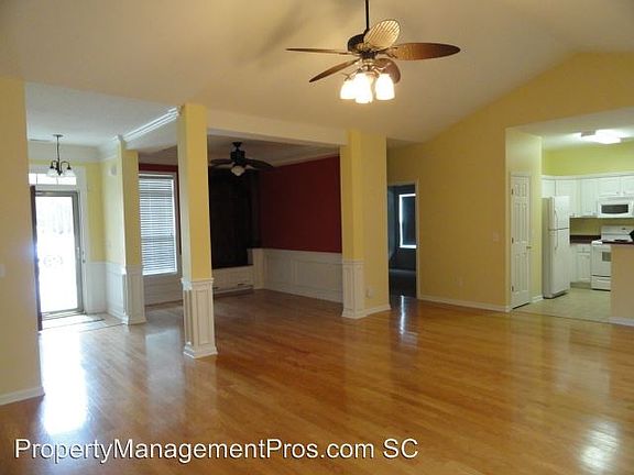 Beautiful 3 Bedroom 2 Bath home located in Woodbridge with a spacious fenced in back yard and over sized screened porch area - This single story home is light & bright w/ high ceilings, lovely columns in formal dining area complete with a custom built in shelving and storage unit, upgraded lighting and ceiling fans throughout the home, sliding glass doors from living room featuring lovely view of the spacious screened in porch with extra large stamped concrete patio, private fenced yard, and tranquil pond. Wood Floors flow throughout the main living areas, with tile in the kitchen and bathrooms. Beautiful & bright kitchen open to the main dining room, features upgraded cabinets, wood floors, Corian surface counter tops & a brand new large under mount single basin sink. Separate laundry room with washer and dryer & large closet space. Large carpeted master bedroom with en suite bath, spacious walk-in closet with built in storage for shoes, dual sinks, separate shower and tub with lovely decorative tile surround. Two good sized guestrooms with carpet and standard closets, share a full sized hall bath. Outback features a large patio and fully fenced yard. The side of the home also has a storage shed. This home is not a true two car garage. A portion of the garage was turned into a den/man cave. See pictures! SORRY NO PETS Amenities Include: Pool & Clubhouse Call today to make this home your next! 843-614-3678 **Showings available with approved application** AVAILABLE: 12/14/18 (RLNE4490429)