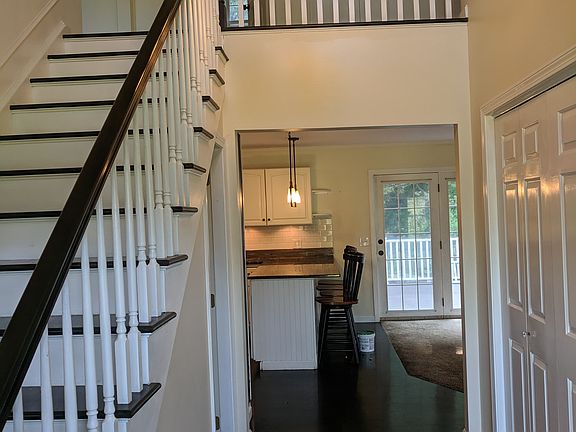 Charming, updated cape on large, private lot in this delightful Jericho neighborhood! Bright and open two story entry with dark stained floors, a grand staircase, and updated fixtures. The large kitchen features unique granite counter tops, beautiful back-splash, lots of storage, and spacious breakfast bar. The kitchen opens into the great room with a gas fireplace. The open concept layout is perfect for entertaining, whether you're hosting family dinners in the casual dining area, or dinner parties in the formal dining room. Relax in the sun room with vaulted ceilings, and step out through the french doors to the large, newly updated, multi-level deck. The second level of this home features an over-sized master bedroom suite with plenty of natural light, walk-in closet, and en-suite bathroom. Two additional large bedrooms, a full bath, and laundry room complete the second floor. The finished lower level basement stays cool all summer long is complete with a living area and workshop space. This home also features an attached garage with brand new garage doors. Large 1.4 acre lot feels even more private with 13+ acres of surrounding common land. The property also includes an upper gazebo with kids play-set, water feature, stone walls, landscaping including a mature willow tree, raspberry and blueberry bushes, and much, much more!