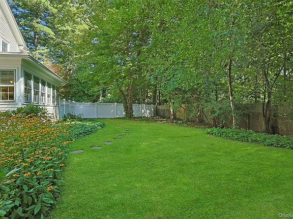 Welcome to 26 Kings Court, Chappaqua, a storybook, village Colonial enchantingly set among towering trees on a quiet cul-de-sac just a short stroll to schools, shops, town and train. If your Brooklyn brownstone could move to the suburbs, this would be it. Regal, barrel-vaulted front portico. Welcoming front entry. French doors introduce the gracious front-facing living room warmed by morning sun and a wood-burning fireplace and accented with built-in cabinetry and hardwood flooring. Adjoining is a traditional formal dining room with chair-rail molding and hardwood flooring. Afternoon sunshine streams into the wonderful white, designer kitchen outfitted with high-end, stainless-steel appliances from Wolf, Sub-Zero and Bosch, and anchored by a large center island with striking butcher block top and breakfast bar. A French door to the deck makes for easy BBQ and alfresco dining. Retreat to the coziness of the sunroom, illuminated by natural light on three sides. Comfort abounds throughout the four, upstairs bedrooms, including the primary with its own sitting/dressing area and private ensuite bath, and in the updated hall bath with marble tile and shower over jetted bathtub. An unfinished, walk-up attic adds more charm and storage. The basement is unfinished and houses laundry, mechanicals and storage. A convenient side entry connects to a flat driveway leading to a detached garage with a separate studio offering flexible space for home office, exercise, or more introspective pursuits. Lush landscaping and lovely yards envelope the residence. A quintessential Chappaqua Colonial.