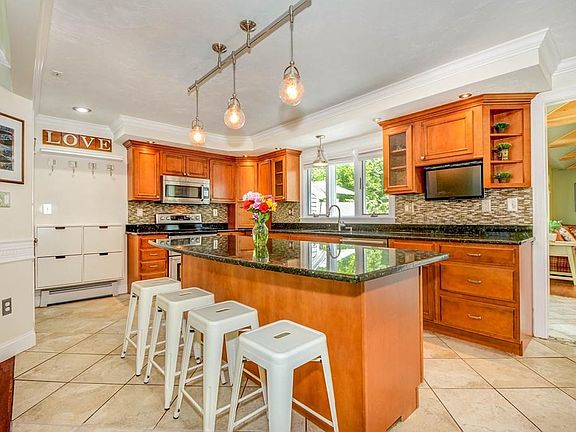 Stunning Colonial home in desirable Tatnuck neighborhood! Situated on a sprawling 0.4 acre lot and FULLY renovated from the inside out! This home features new roof, siding, windows, insulation, heating, plumbing, electric, A/C and custom interior woodwork & fixtures. High-end spacious kitchen opens up to airy and inviting dining room, and boasts maple cabinets, granite countertops, huge 9-foot kitchen island, and stainless appliances. Formal living room and large, vaulted family room are both accented by pellet stoves and beautiful stone fireplaces. Vast 500-square-foot PVC deck overlooks the expansive green lawn, raised garden bed and fire-pit seating area. Also on the first floor is a half-bath and laundry room! The second floor features three bedrooms, including master suite with Jacuzzi tub and dual closets, plus another full bath and extra closet space. Welcome home!