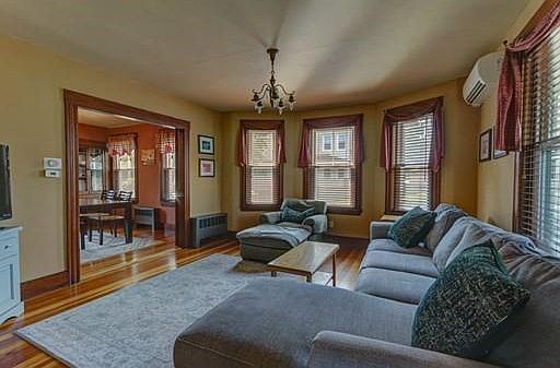 Located on a fully fenced corner lot, this fantastic antique colonial home has so much to offer! Remodeled kitchen with granite counters, extended cabinets, and recessed lighting. The formal dining room has a glass door built-in cabinet and french doors leading to the family room with bump out bay window. Beautiful hardwood throughout most of the home and almost every room has its own efficient mini-split to keep things comfortable. Second floor offers 2 bedrooms, an office/nursery, laundry room, and full bath complete with a massive tiled walk-in shower, soaking tub, and double bowl vanity. Third floor has an additional bedroom and loft area - perfect for a media or play room, exercise area, craft room, etc! Step out back onto the multi-level deck overlooking a large treed backyard with plenty of space to grill, entertain, or just sit back and relax. Close proximity to shops and restaurants, T-station, and beautiful Cushing Memorial Park.