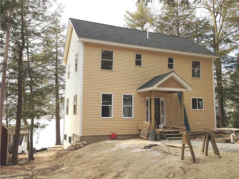 Cannot ask for a better paradise close to everything. Lake Front living in a newly constructed top of the line home with a 3 car detached garage;2 of which lease is included along with 2 other parking spots. Covered entrance to marble flooring leads to beautiful flooring, open concept granite kitchen and breathtaking views on every level. Large living spaces and possible 3 bedroom or office. Get in time for the incredible New Hampshire summer and lakeside living. Second level has two bedroom suites with their own bathrooms. Large family and living rooms have lots of windows and westerly view