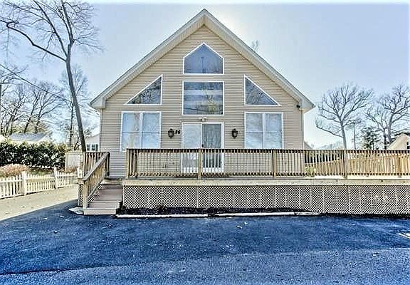 GORGEOUS VIEWS OF THE LAKE!! This 2005 built gorgeous A frame overlooking North Pond at Lake Congamong has been completely remodeled and offers a private path to the lake! Gleaming custom designed tiger maple, worm wood maple and curly maple floors have been recently installed and are breathtaking! Stunning brand new kitchen with beautiful granite counters, brand new appliances and ceramic tile, freshly painted throughout as well as new carpeting and a bath that is truly beautiful and brand new with a top of the line granite! Brand new 10 by 30 deck wraps around the house and can easily hold a party of 50! Private deeded path for you and only 1 neighbor to the water for year round fun! Brand new on demand hot water and sewer loan has been paid in full!! Hot tub, fire pit and private patio too!! Vinyl and rod iron fenced in yard!! Brand new central vac! Central air! Come see your NEW home today!! You will fall in love!!