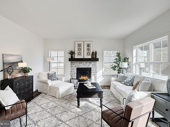 This thoughtfully designed, 2-story home features 9’ ceilings on the first floor, and a 2-car, lower-level garage with basement access. A welcoming front porch provides entry to the foyer where stylish vinyl plank flooring flows throughout the main living areas. To the front of the home is a versatile, carpeted flex space to the right and formal dining room to the left. The open kitchen is well-equipped with stainless steel appliances, beautiful cabinetry, quartz countertops with tile backsplash and a large center island. To the left of the kitchen is access to the rear patio and a family room warmed by a gas fireplace with stone surround. To the right is a spacious pantry, powder room, and large carpeted bonus room. On the 2nd floor, the owner’s suite includes a private bathroom with a double bowl vanity, 5’ shower, and an expansive closet. Three additional bedrooms, a full bathroom and laundry are also found on this floor.