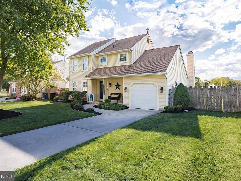 Welcome to 26 Linden Drive, a charming three-bed, two and a half bath home in the highly coveted Timber Cove community. Upon entering this homes’ foyer you have a direct sightline to the living room , dining room and kitchen.  The tastefully appointed eat-in kitchen, with pantry closet has stainless steel appliances and a peninsula counter providing ample counter space and large windows that look out to the house’s oversized back yard . To the left off the foyer is a bright living room which opens to a spacious dining room flooded with natural light and connected to the kitchen for ease of entertaining. There is also a first floor powder room , a large coat closet and an additional storage closet. Off the kitchen is the laundry room and access to a one car garage. From the kitchen, step down into the expanded family room complete with wood burning fireplace  with mantle and a sliding door that leads to the back yard which is one of the largest back yards in the community.  It is not only large but is flat and fenced in and has a full sprinkler system making it ideal for installing a pool or whatever you desire. The second floor features three  spacious bedrooms and a full hall bath and linen closet. The  generous owners’ suite with mirrored closet doors has a newly renovated private full bathroom. Conveniently located just 15 minutes from Philadelphia and 45 minutes from Atlantic City.