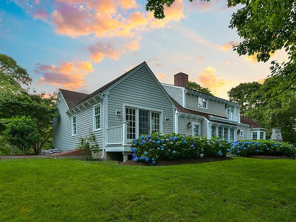 Discover the charm of 26 Little Lane, a stunning residence in North Chatham near Eastward Ho, Crows Pond, and Pleasant Bay. This classic half Cape, designed by renowned architect Royal Barry Wills, has been thoughtfully expanded by its current owners and designed for modern living. Nestled on a private road lined with iconic blue hydrangeas and rhododendrons, this property offers an idyllic retreat.The custom kitchen is a chef's dream, with a Wolf stove, Miele dishwasher, and Sub Zero fridge, all concealed by custom cabinets. Modern conveniences and luxury features surprise throughout, including central AC, remote-controlled shades, custom wood gutters, and California closets.The primary bedroom wing on the first floor offers privacy and tranquility, enhanced by reclaimed beams, a clawfoot tub, a stand-in shower, and dual vanities. An authentic bar from a local hotel and original built-ins add to the home's unique charm.Outdoor living impresses with a back deck featuring an outdoor fireplace and expandable awning. Every corner of this home showcases custom murals and thoughtful touches, epitomizing the quintessential Cape Cod lifestyle with elegance and comfort.