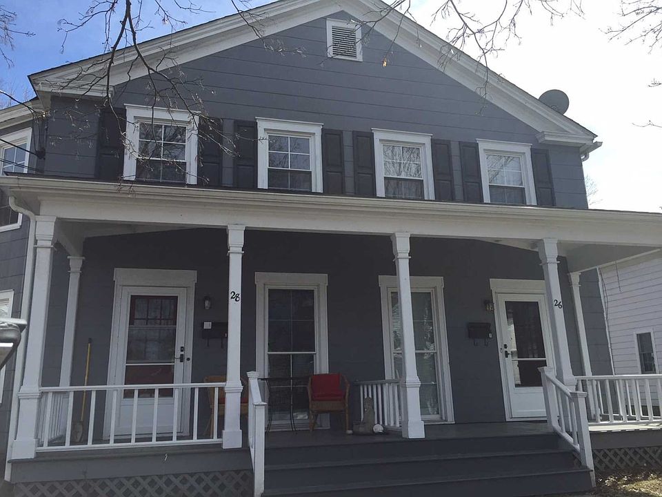 Bright 1-bedroom first story rental. Hardwood floors throughout, cute front porch, heat and hot water included. Tenant pays electric, phone, cable, parking permit. No smoking, no pets. Credit check, application fee.