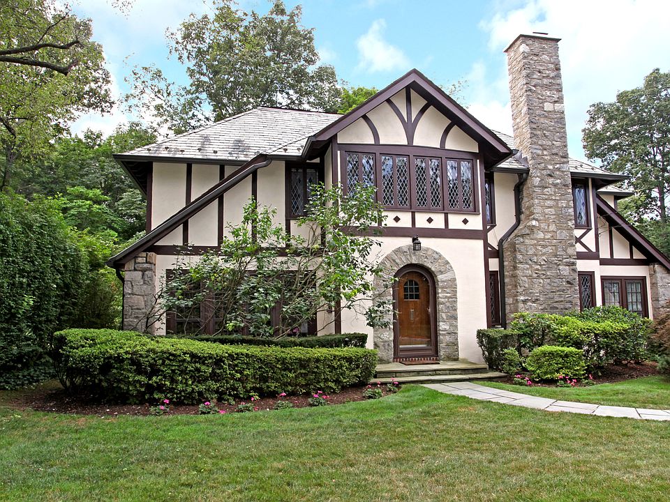 Beautifully renovated & freshly painted Village Tudor with custom designed stained glass windows, hardwood floors, restored woodwork. Large living room with fireplace. Oversized dining room. Family room with floor-to-ceiling windows. Large eat-in-kitchen next to enclosed porch. Master bedroom with bath, walk-in-closet & office. Three bedrooms, full bath. Attic bedroom & full bath, incl in sq.footage. Walk to train. Taxes w/out STAR. Bus to elem and middle school. New garage door being installed.