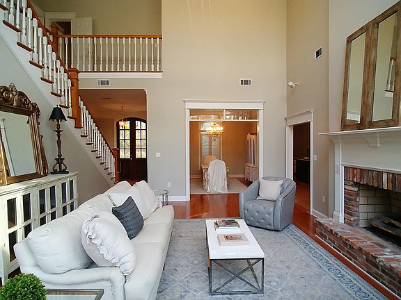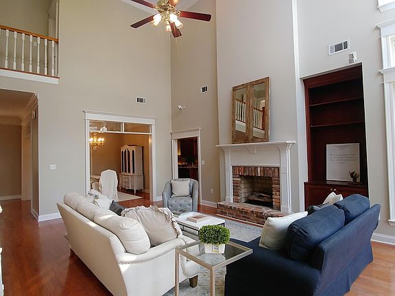 Located in Canebrake, this home wows with 23' ceilings and a wall of windows overlooking the golf course. There are 2 bedrooms and 2.5 baths downstairs and 2 bedrooms sharing a Jack and Jill bath upstairs. The kitchen is large with lots of cabinets, a walk in pantry, and additional space for a keeping room and office. The living room features a vented fireplace currently set up for gas logs. This home also has a formal dining room. Call today to schedule your showing!