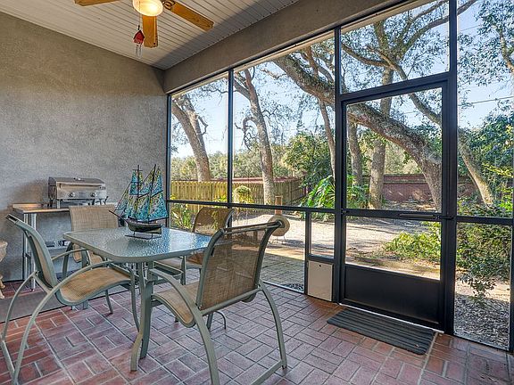 Magnolia Dunes is a small well established island neighborhood just half a mile from the beach. Highly elevated, this well built concrete block home is in Flood Zone X and there was no damage from any of the recent storms (12.8' elevation). Nestled under a canopy of towering oaks on an oversized lot, this family home offers 4 bedrooms plus a 5th room suitable for use as home office, den, or formal dining room. Brand new roof installed June 2019. A screened back porch overlooks the big fully fenced backyard. The owner's suite has his and hers walk-in closets, double vanity, and a large separate walk-in shower. Additional features include an updated fireplace, gas range, artesian irrigation well/sprinkler system. HVAC system was replaced in 2021 so no major expenses expected on the horizon. The home was completely remodeled in 2020 that included all new flooring, cabinets throughout, granite counter tops, faucets, sinks, toilets, appliances, blinds and new LED lighting. All interior and exterior surfaces received a new two coat system of Sherwin-Williams paint. This home is truly "move-in ready"!