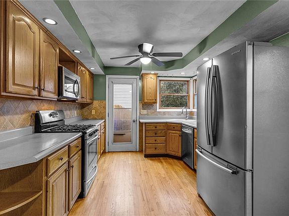 A lovely split-level in desirable Kent Gardens neighborhood! This move-in ready home features a bright and roomy kitchen with dining area, gas stove, recessed lighting, tiled backsplash, and modern appliances. The charming living room lets in ample natural light through the bay window. Upstairs are three lovely bedrooms, and the lower level is perfect for spending time with family and friends while watching the big game in front of the fireplace. Enjoy the large, fenced-in backyard on warm days! Also boasting a one-car attached garage, new vinyl siding for a maintenance-free exterior, new roof, and new heating system. Nothing to do but move in and make this house your home!