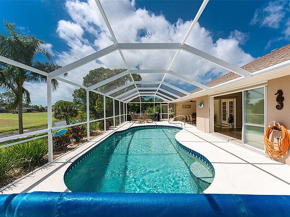 This waterfront, golf course, pool home, with a coveted 3 car garage, located on a double lot in the Premier Golfing Community of Rotonda West, is turnkey furnished so you can simply move in and start enjoying life in paradise from day one. Perfectly situated on a double lot, Buyers with a keen eye for comfort, quality and charm will adore this remarkable residence, showcasing the very best in Florida living. Everything was designed to put you at ease from the manicured landscaping and desirable golf-front location to the spacious layout that connects effortlessly to the outdoors. The split bedroom floor plan of this pool home is generous and functional with four spacious bedrooms, three full baths and one-half bath. Each bedroom has an en-suite bath, with one doubling as a pool bath, and your master bedroom sliding glass doors open to the pool and beautiful views. Your master bath is simply impeccable with on-trend tiles, a double vanity, a walk-in shower, and a soaking tub. A selection of living spaces is also on hand with a room for every mood and occasion whether youre unwinding at the end of the day, gathering with friends and family, or entertaining guests. The heart of the home will surely be the updated chefs kitchen with everything you could ever ask for. The soft-close wood cabinets were added in 2021 plus there are sweeping granite countertops, quality fixtures, and a suite of 2018 stainless steel appliances that will make cooking a true pleasure. From here, you can move into the great room with a soaring vaulted ceiling and wood-look tile flooring while the dining room has pocketing sliders that lead to the lanai and beautiful water and golf course views. French doors also open to create a seamless connection to your sparkling heated pool and screened lanai where you can enjoy endless hours of fun as you admire waterfront views to the fairway beyond. All this, and a long list of extra features including a brick paver drive and walkway, upgraded ceiling fans throughout, hurricane and plantation shutters, a new roof (2021), a pond-fed irrigation system, and numerous built-in features. Nearby shopping, golf courses, beaches, and entertainment ensure youre never far from everything you could ever need! Do not miss this, call today!
