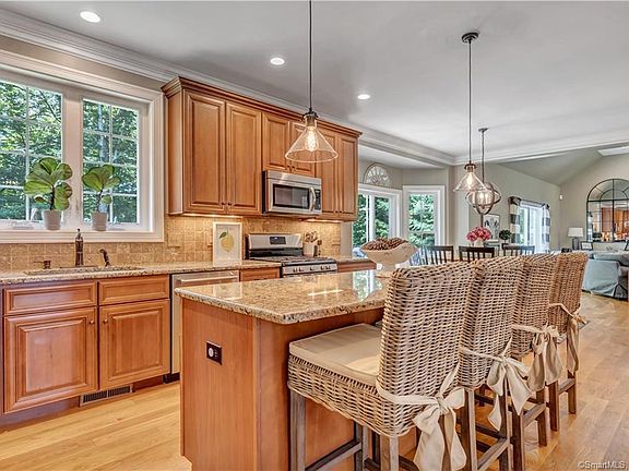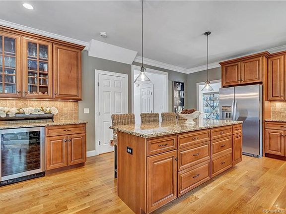 Welcome to 26 Marlin Rd, a stylish, newer colonial with the perfect combination of a neighborhood setting and privacy. Upon entering this home, you will notice the pride of ownership. The welcoming foyer flows into the stylish kitchen with an oversized island with seating for four. The large cabinets provide plenty of space for storage. The home is perfect for entertaining, with an open concept kitchen/living area as well as a bar with wine fridge! The family room has vaulted ceilings and built-ins, while the fireplace provides a cozy focal point. There is a large, bright dining room that opens to the formal living room. A half bath and a playroom/office round out this main floor. As you ascend the stairs you will find the ample sized master suite, complete with a large walk-in closet and spa quality bathroom with double sinks. Three other bedrooms of generous size are also located on this floor sharing a full bathroom. On the lower level you will find additional finished space which could serve a multitude of purposes. A mudroom with access to the garage creates the perfect place for storage with built-ins. Outside, you will notice the serene setting. Meander over to the firepit, relax on the large deck with the outdoor TV or take a dip in the hot tub amidst the trees. Its the perfect retreat for a vacationing at home! Set up a showing to see this like-new, well maintained home today!