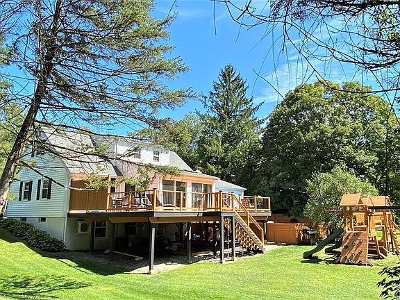 Welcome home to this move-in ready Cape located in the Greenfield Meadows. Open floor plan with three sets of sliding doors leading out to a large deck overlooking the in-ground pool and yard. The updated kitchen has Silestone countertops with a breakfast bar, open to a dining area, and family room. There is also a half bath making this the perfect space for entertaining. The formal living room has a wonderful fireplace with a pellet stove insert to keep you nice and warm. The first floor master suite has a large walk in closet and a spectacular bath that is a place to retreat with its spa-like feel. The second floor has two bedrooms with great built-ins and a full bath. The basement provides additional space to use as you would like with a walk-out to the yard. All of the systems are updated and the work has been done. Move right in and enjoy this house full of detail and character, conveniently located to Interstate 91, and local area attractions.