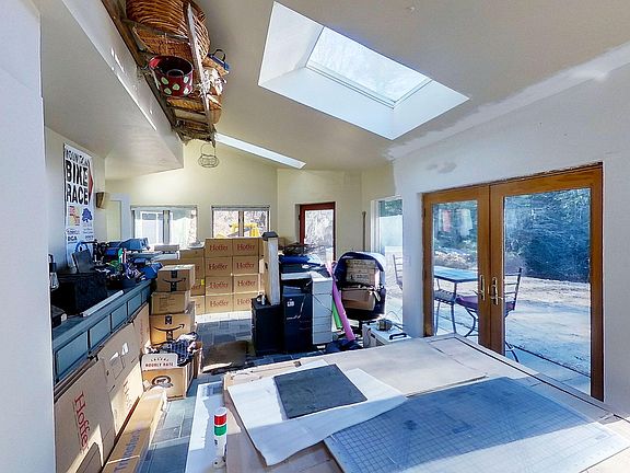 The kitchen is a focal point, boasting a spacious island for entertaining, seamlessly connecting to both the living room and the sunroom. Nestled among trees and beside a tranquil brook, this home offers a serene retreat just minutes away from downtown. Various small nooks throughout the home provide versatile spaces for offices, crafts, or workshops, all illuminated by ample natural light. Embrace year-round enjoyment in this unique and inviting residence.