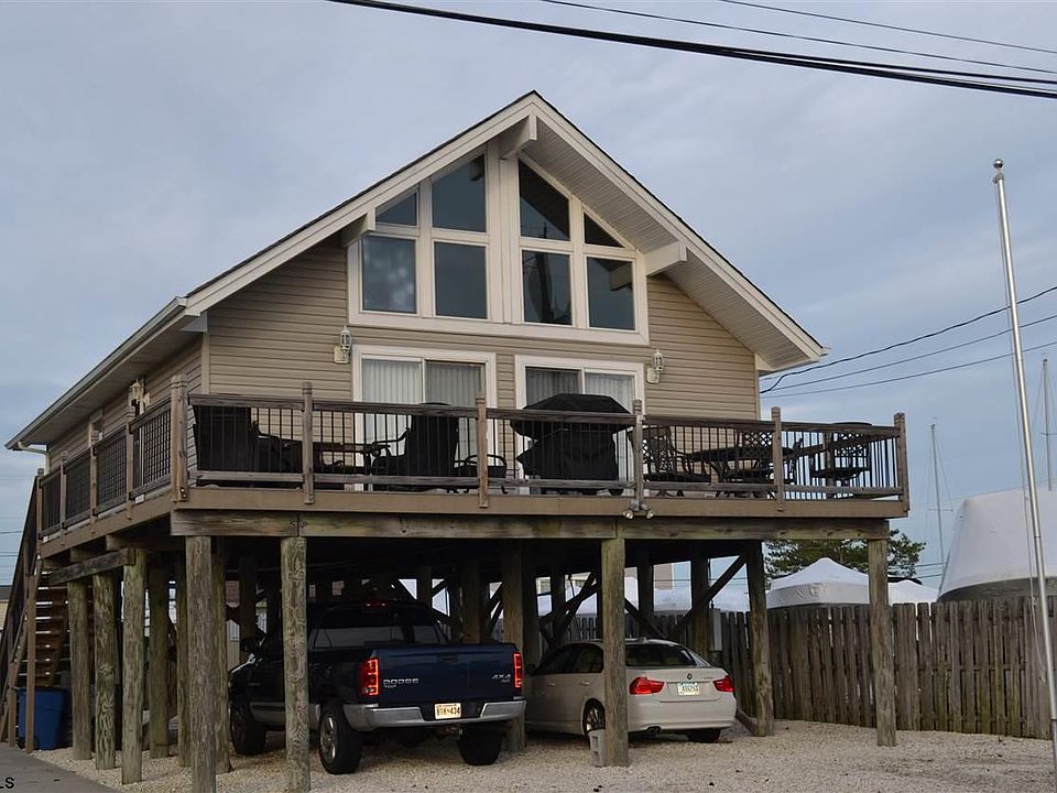 An 884 square foot single family home in Avalon Manor under $400k ! This two bedroom + loft is a perfect place to spend your vacation time. It sits high on top of 15 foot pilings, so there is no flood worry, and is nestled between the boat storage section of the local marina, and a beautiful cove presenting great water views. Additionally, it brags a large loft containing 3 beds and a desk area. A large front deck, 6+ car parking on the property, an outdoor shower, and a large shed add to the summertime experience. Avalon Manor is a friendly island community just 5 minutes from Avalon's Beaches. You could buy a smaller two bedroom condo in Avalon, with no views, and HOA fees, but why would you?
