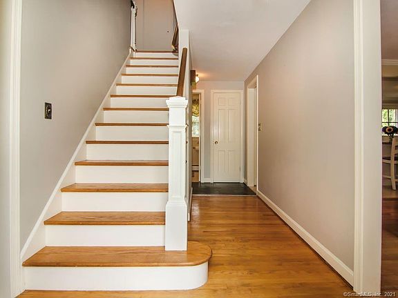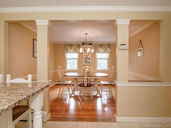 Traditional Col set on a beautiful lot on a culdesac. Hardwood Floors throughout the home (under the carpet in the living and family room. The kitchen has new stainless appliances; custom cream colored solid wood cabinetry with granite counters and a large island for prep, gathering and meals. The dining room is open to the kitchen for informal and formal dining. The front to back family room with a fireplace is off the kichen. The front to back living room is accessed from the kitchen also making a great flow for everyday living. The 2nd floor has 4 bedrooms with a center hall full bath and the master has its own full bath. There is access to the attic is from a hatch in the master closet and a 2nd access through a door in the side bedroom that extends over the garage giving you plenty of storage for everyday items. The full basement opens to the garage. The oversized open backyard is surrounded by a privacy of mature trees allowing for all kinds of activities. The landscape has been carefully planted around the home with shrubs and flowers for all seasons giving constant color. The location makes for a quick ride to the recreation area, schools and the center of town with a variety of shops and restaurants. The 5 tall Pine trees lining the front yard will be taken down in the next 2 weeks.