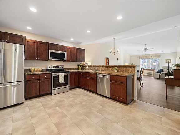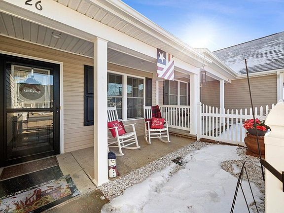 Welcome to this beautifully designed one level living, featuring 2 bedrooms & 2 full baths. As you step inside, you will be greeted by a stunning great room that boast vaulted ceilings, creating an airy and open atmosphere. The primary bedroom is a true retreat, completed with a walk-in closet, en-suite bathroom features a handicap-shower. Enjoy the charm of a rocking chair front porch or your back deck perfect for relaxing with morning coffee or an evening breeze. One car garage and plenty space to park in driveway. Home features vinyl luxury hardwood flooring. All blinds throughout home are electric and conveniently operated by remote control. You don't have to mow your yard or shoveling the snow at this home.