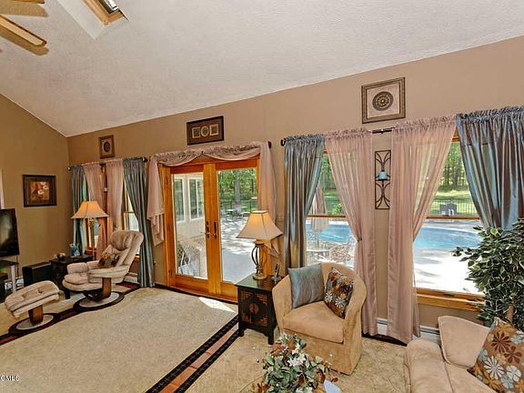 One of a kind! Amazing contemporary home situated on 1.3 acres. MANY upgrades including two gas fireplaces, hardwood floors, updated master bath, cathedral ceiling, modern kitchen with granite tile countertops, inground sprinkler system, Daiken Heat/AC units x 6, Jennair dual-fuel range, first floor master, finished basement, security system, large sunroom, 16 X 32 inground pool with steps, an incredibly landcaped bakyard and so much more!