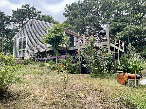 Natural Beauty! A lovely setting from which to enjoy Brewster's local offerings and a stepping stone to the Outer Cape. Down the road from the hiking trials in Punkhorn conservation lands, deeded path to Lower Mill Pond at the road's end, 2 miles from Brewster's Bayside beaches, and right in your backyard, beautiful pollinator gardens, outbuildings for storage, (chickens anyone?) and private yard with surrounding lush green buffer. This home needs work but offers convenient single level living with 3 bedrooms, full bath, updated kitchen and living area on the first floor plus finished lower level with full bath and separate entrance. Close to Captains Golf Course, the Cape Cod Rail trail, public tennis and pickle ball courts. House currently has a cesspool and will need a new septic system. Seller will provide approved engineered septic plans. Installation & any additional costs will be the responsibility of the buyer.