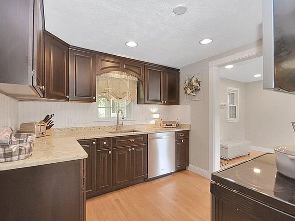 Exceptional curb appeal and an interior that won't disappoint. This Quintessential Cape home is filled with warmth and charm, waiting for you to bring your own personality. Sun filled family room has built in book cases and is open to excellent sized dining room which offers crown moldings and wainscoting. There is a play room or perhaps an office located on the first floor. New remodeled kitchen, granite countertops and stainless steel appliances. Directly off the kitchen is the breakfast room/sunroom. Perfect for family dinners! The half bath has a lovely free standing vanity and this completes the first floor. The second level has a primary bedroom and two other bedrooms. Main bath has tile tub/shower and solid top vanity. Directly off the breakfast room is the amazing 3 season porch! Deck and flat backyard makes this home perfect for outdoor grilling and entertaining! Great commuter location. New electrical service 2022, hot water tank 2018, chimney repointed 2021, roof 2010