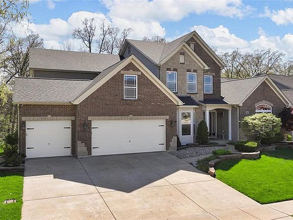 Amazing 1.5-Story home with brick and stone front, wonderful landscaping, and backs to wooded common ground - perfect setting for your dream pool or outdoor entertaining space. Large 2-Story entry foyer leads to vaulted office, spacious coffered formal dining room, and huge great room with 12-foot ceilings, wall of windows and fireplace with built-in bookcases. Chef's kitchen with large center island, breakfast bar, granite countertops, double oven, stainless appliances, 42-inch maple cabinetry, and walk-in pantry. Hearth room with 2nd brick fireplace, and huge primary suite bedroom with walk-in closet and luxury bath completes the main floor. Upstairs, you will find an expansive family/game room, 2 nicely-sized bedrooms that share a Jack and Jill bath, a 4th bedroom, and the 3rd full bath. Additional highlights include: walkout lower level with 2 double windows, zoned HVAC (replaced 2023 with warranty), large patio, 3-car garage, and newer roof (2018).