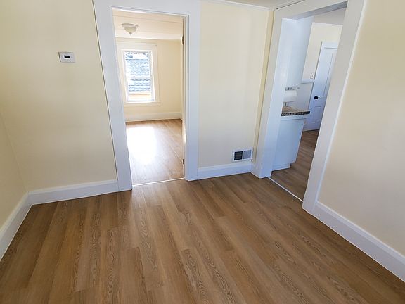 Spacious, newly renovated one bedroom/one full bath apartment in a quiet neighborhood. Large eat-in kitchen with brand new appliances, countertops, sink and flooring. Refinished wood floor in the living room and all new flooring elsewhere in the apartment. New paint throughout the entire apartment. Townhouse style four-unit building with separate entrances for each apartment. In addition to the kitchen, bathroom, living room and bedroom, there is another room off the kitchen that can be used as a dining room or an office. Second floor unit. Quiet building. Washer/dryer hook-ups in the kitchen. Off-street parking for two cars. No pets. No smoking. Rent is $1400 per month. Security deposit is $1400. Tenant pays utilities. Natural gas heat.