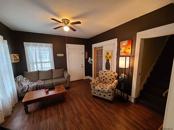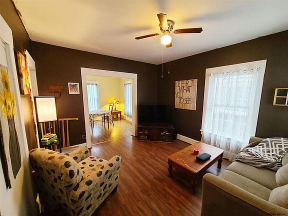 Conveniently located in town with recent updates! Large eat-in kitchen with pantry and an adjacent formal dining room. 3 bedrooms, 1 bath with a unique walk-in closet on the second floor. So much extra storage! A bonus room on the first floor is currently used as a 4th bedroom. Upstairs carpet recently removed and floors recoated. Covered front porch and off-street parking - this is a must see!