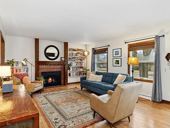 HOME SWEET HOME. Updated mid century modern Bel Air home with 1950's integrity preserved. Thoughtful interior improvements and updates include refinished hardwood floors; new attractive kitchen with quartz counters and stainless appliances; renovated baths; new solid interior doors, new trim and carpet and new interior paint. New roof, HVAC, water heater, new windows in living room, two bedrooms and dining room, added insulation and new garage door and opener provide a solid infrastructure. This delightful brick home offers a welcoming ambience with a charming living room with gas fireplace and bookcases; open kitchen with dining area; sunlit three seasons room with second gas fireplace; three bedrooms on upper level with primary bedroom with double closets and a fourth bedroom/ office in lower level; unfinished basement with ample storage and bonus area. Exterior deck and usable yard with mature trees offer a great backyard for outside fun. Excellent friendly Eastside neighborhood with close proximity to downtown Iowa City and Hickory Hill Park.